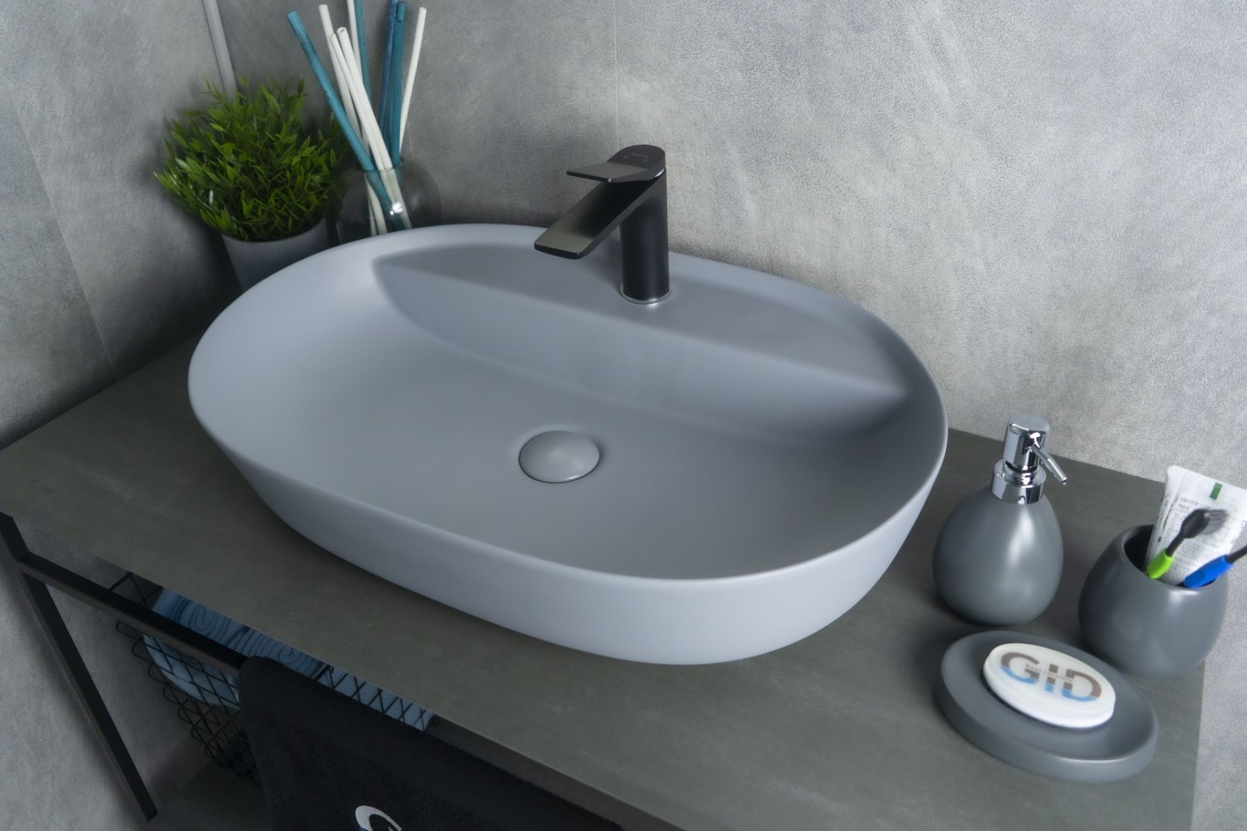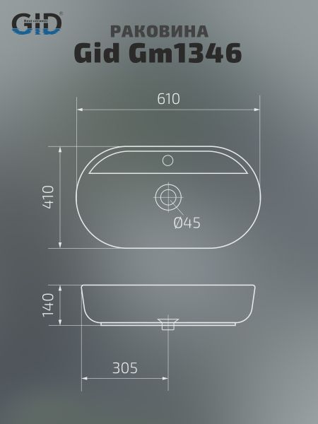 Раковина Gid Gm1346 53341 накладная серая матовая 61x41x14 купить
