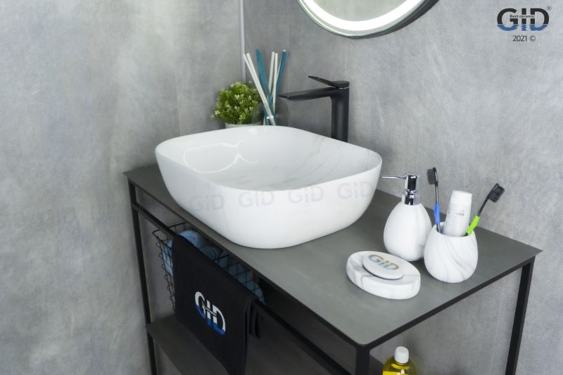 Серия Geometrico с прямоугольной формой: стиль и практичность с испанским качеством и европейскими стандартами. Раковина накладная GiD K397D9— элегантная модель прямоугольной формы, изготовленная из высококачественной керамики с глянцевой поверхностью в белом цвете, создающей эффект натурального камня. Её строгий и современный дизайн идеально подойдёт для ванных комнат в минималистичном или современном стиле. Модель не имеет отверстия под смеситель, что позволяет использовать различные варианты настенных или встраиваемых смесителей, предоставляя свободу в дизайне интерьера. Раковина предназначена для установки на столешницу, подчёркивая стильный и функциональный интерьер ванной комнаты.