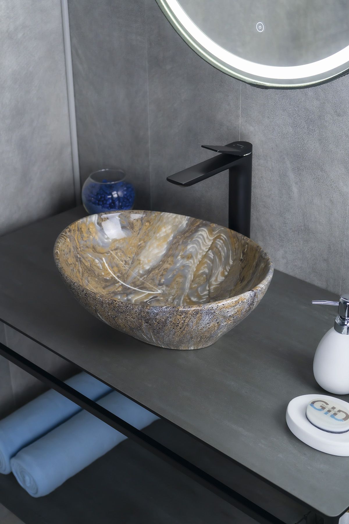 Раковина Gid Mnc138T 54472 накладная под камень глянцевая 41x34x15 купить