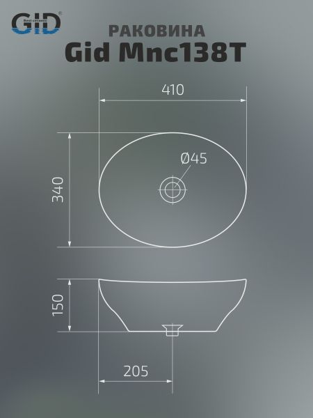 Серия Lago овальной формы — это испанское качество, соответствующее современным европейским требованиям. Раковина накладная GiD Mnc138T — это стильная модель, изготовленная из высококачественной керамики. Она имеет овальную форму, что делает её практичным решением для современных ванных комнат. Дизайн раковины имитирует глянцевую поверхность натурального камня, придавая интерьеру элегантность и утончённость. Благодаря отсутствию отверстия под смеситель раковина позволяет реализовать различные дизайнерские решения по размещению смесителя. Раковина устанавливается накладным способом на столешницу, что подчёркивает её современный стиль. Раковина предназначена для бытового использования и гармонично впишется в любой интерьер ванной комнаты.