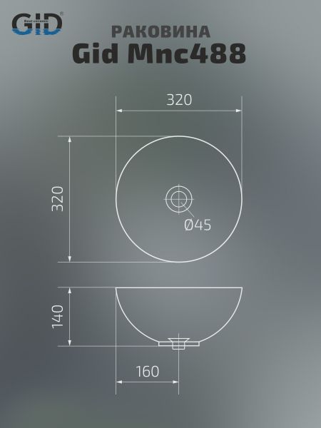 Раковина Gid Mnc488 54436 накладная под камень глянцевая 32x32x14 купить
