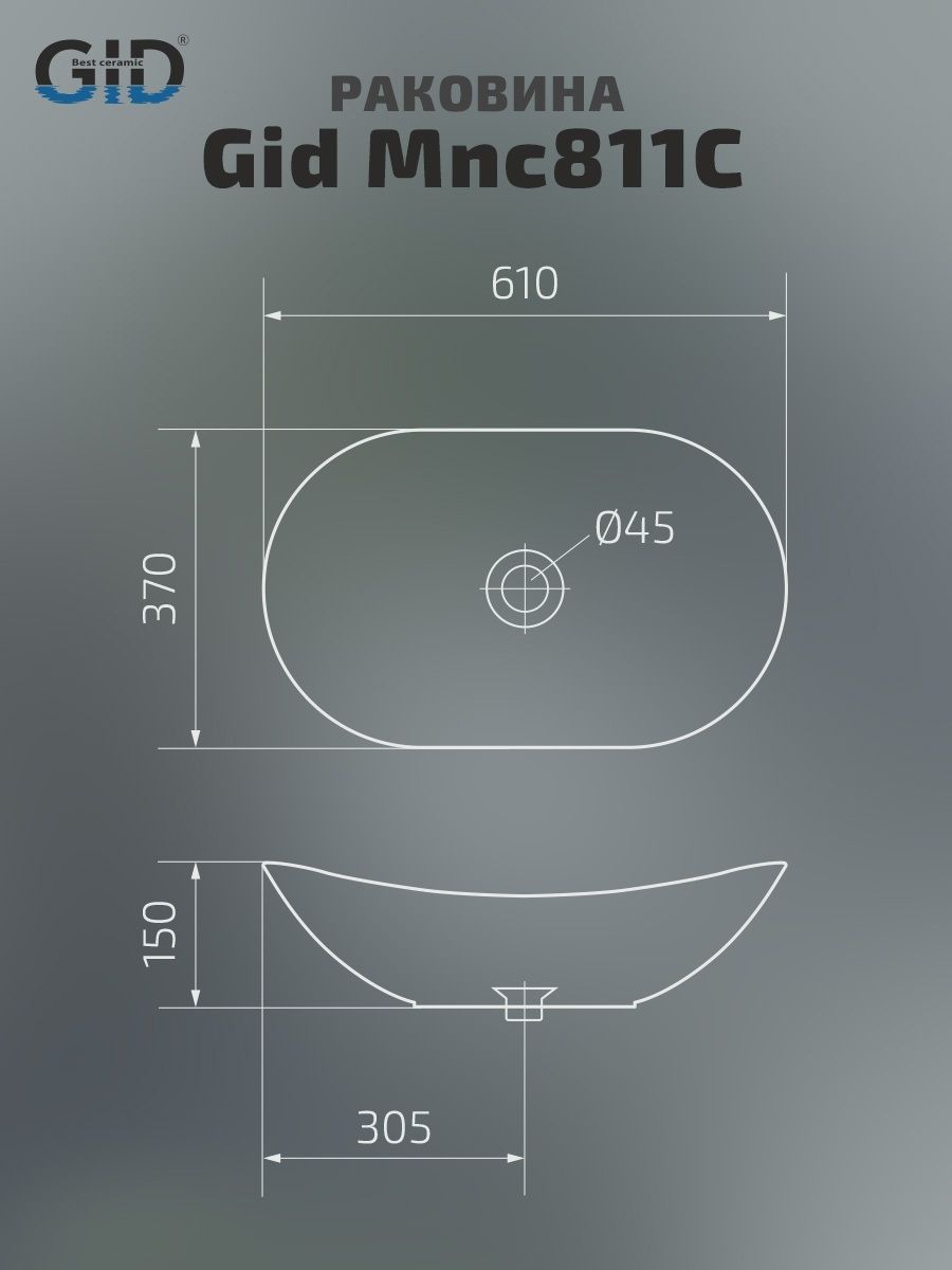 Серия Lago овальной формы — это испанское качество, соответствующее современным европейским требованиям. Раковина накладаная GiD Mnc811С— стильная и современная модель, изготовленная из высококачественной керамики с глянцевой поверхностью в белом цвете, создающим эффект натурального камня. Её овальная форма и минималистичный дизайн идеально подходят для ванных комнат в любом стиле, от классического до современного. Модель предназначена для накладной установки на столешницу, что позволяет подчеркнуть изысканность интерьера. Отсутствие отверстия под смеситель позволяет выбрать любую модель настенного или встроенного смесителя.