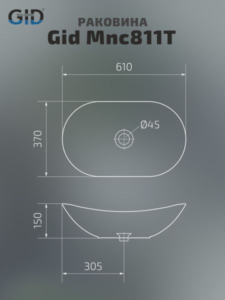 Раковина Gid Mnc811T 54477 накладная под камень глянцевая 61x37x15 купить