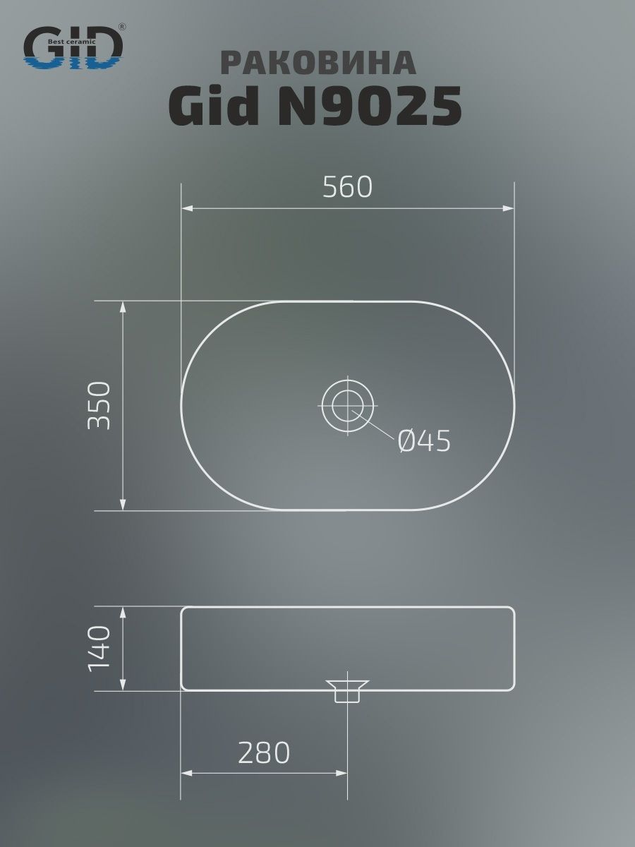 Раковина Gid N9025 51111 накладная белая 56x35x14 купить