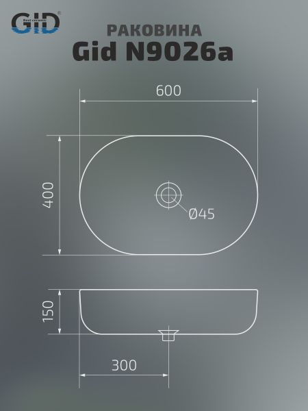 Раковина Gid N9026a 51112 накладная белая 60x40x15 купить