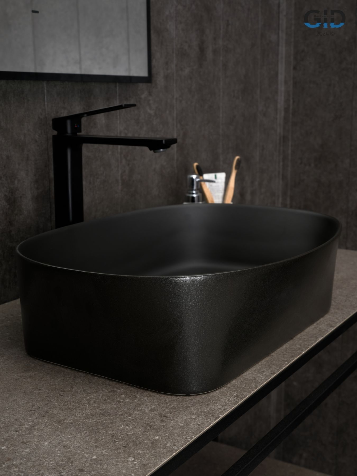 Раковина Gid N9028bg 53380 накладная черная графит 53x36x14