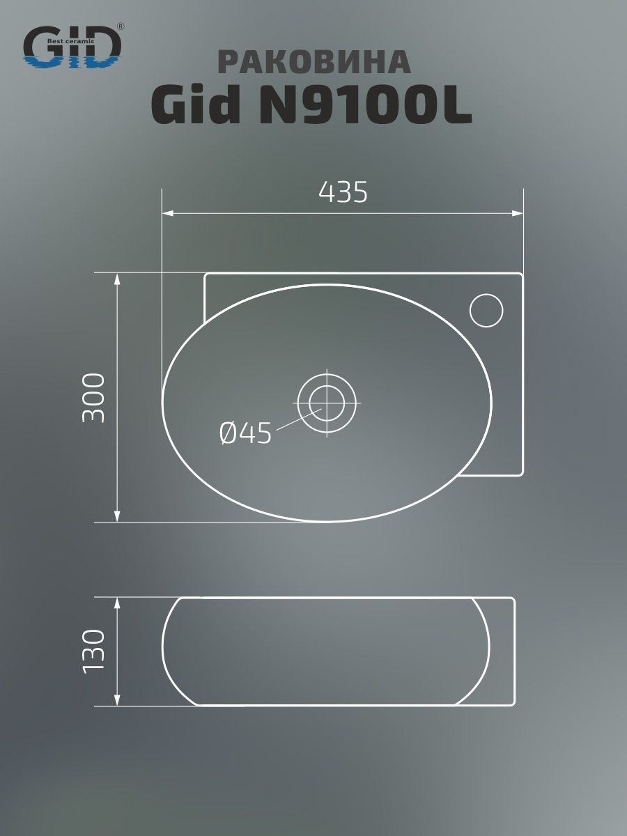 Раковина Gid N9100L 61103L подвесная белая 43.5x30x13 купить