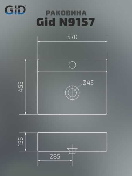 Раковина Gid N9157 51216 накладная белая 57x45.5x15.5 купить