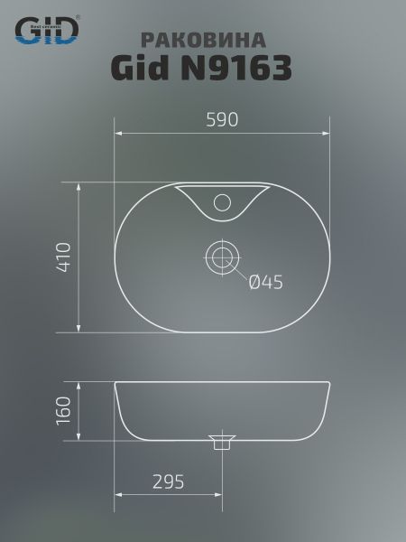 Раковина Gid N9163 51127 накладная белая 59x41x16 купить