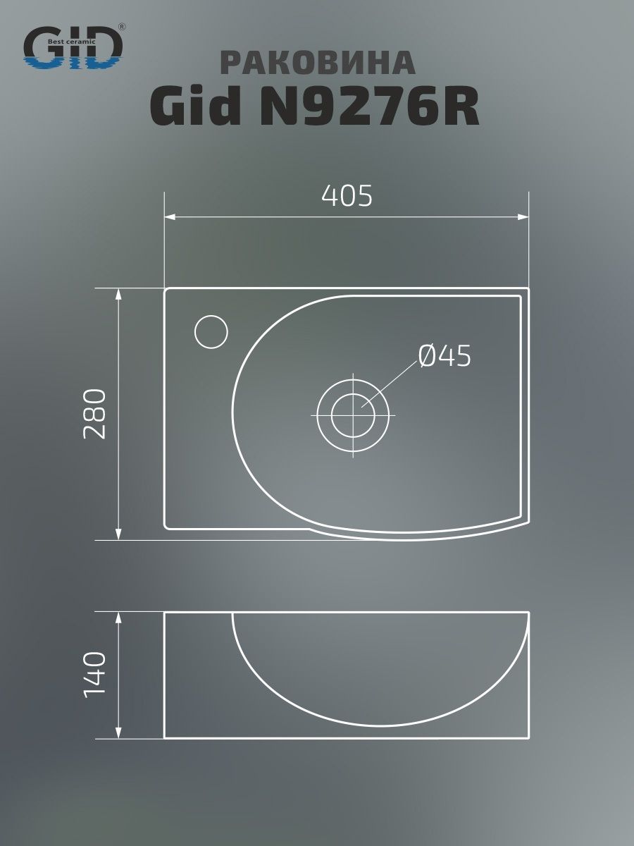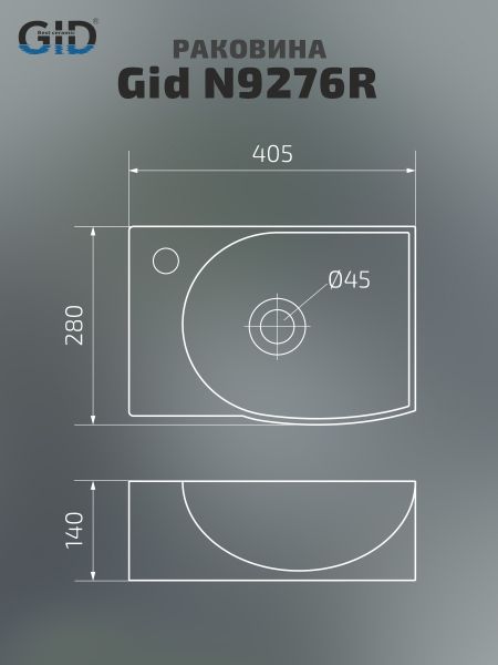 Раковина Gid N9276R 61130R подвесная белая 40.5x28x14 купить