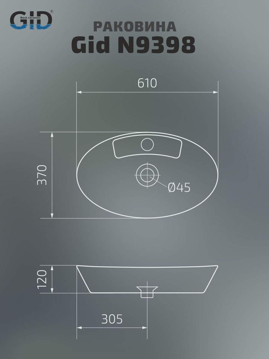 Раковина Gid N9398 51142 накладная белая 61x37x12 купить