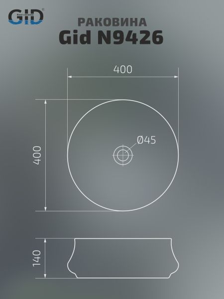 Раковина Gid N9426 51145 накладная белая 40x40x14 купить