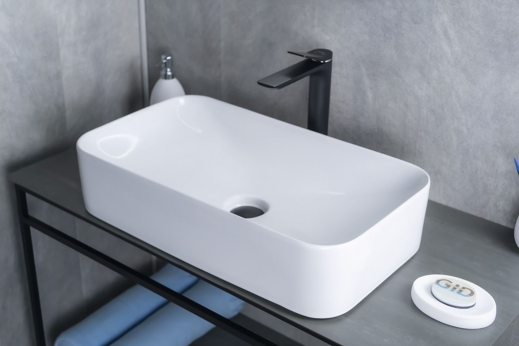 Серия Geometrico с прямоугольной формой: стиль и практичность с испанским качеством и европейскими стандартами. Накладная раковина GiD N9596 — сочетание элегантного дизайна и практичности для вашей ванной комнаты. Изготовлена из мелкопористой керамики с белым глянцевым покрытием, она придаст интерьеру свежесть и утонченность. Прямоугольная форма обеспечивает оптимальное пространство для комфортного использования. Отсутствие отверстия под смеситель подчеркивает минималистичный стиль, а накладной способ монтажа на столешницу облегчает установку и позволяет создать современный облик ванной комнаты.
