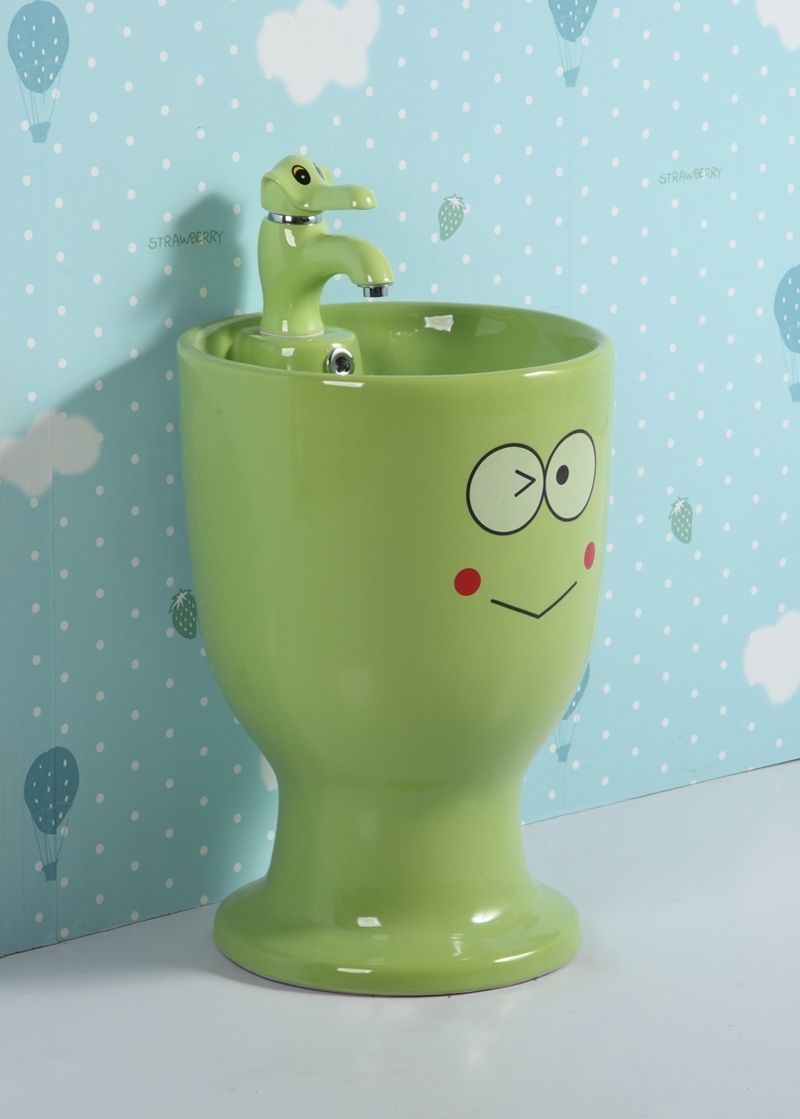 Aventura — яркая коллекция унитазов, раковин и детских смесителей, специально разработанная для детей. Продукция обладает высоким испанским качеством и полностью соответствует европейским стандартам. Напольная раковина GiD Nb193-G с ярким зеленым глянцевым покрытием изготовлена из высококачественной керамики. Благодаря своим компактным размерам идеально подходит для детской ванной комнаты. Модель оснащена отверстием для смесителя, что упрощает установку и использование. Напольная конструкция обеспечивает надежность и устойчивость, что является важным аспектом в детской ванной комнате.