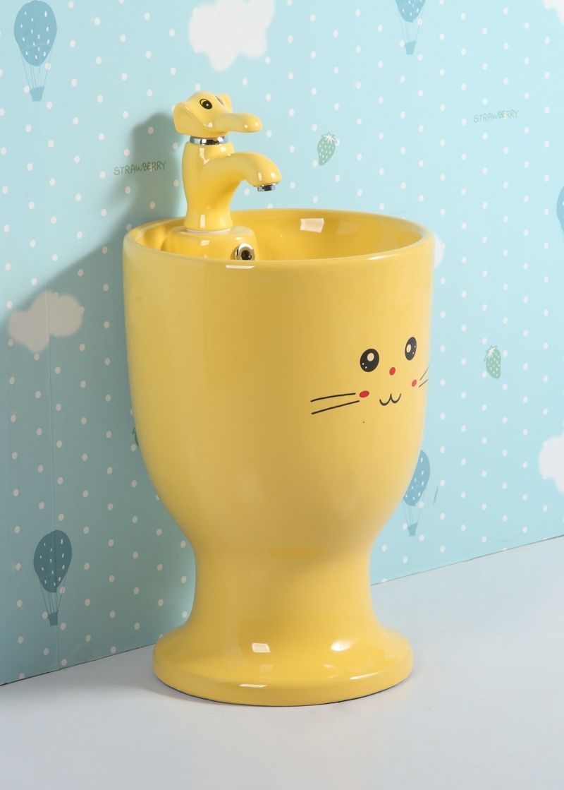 Aventura — яркая коллекция унитазов, раковин и детских смесителей, специально разработанная для детей. Продукция обладает высоким испанским качеством и полностью соответствует европейским стандартам. Напольная раковина GiD Nb193-Y с ярким желтым глянцевым покрытием изготовлена из высококачественной керамики. Благодаря своим компактным размерам идеально подходит для детской ванной комнаты. Модель оснащена отверстием для смесителя, что упрощает установку и использование. Напольная конструкция обеспечивает надежность и устойчивость, что является важным аспектом в детской ванной комнате.