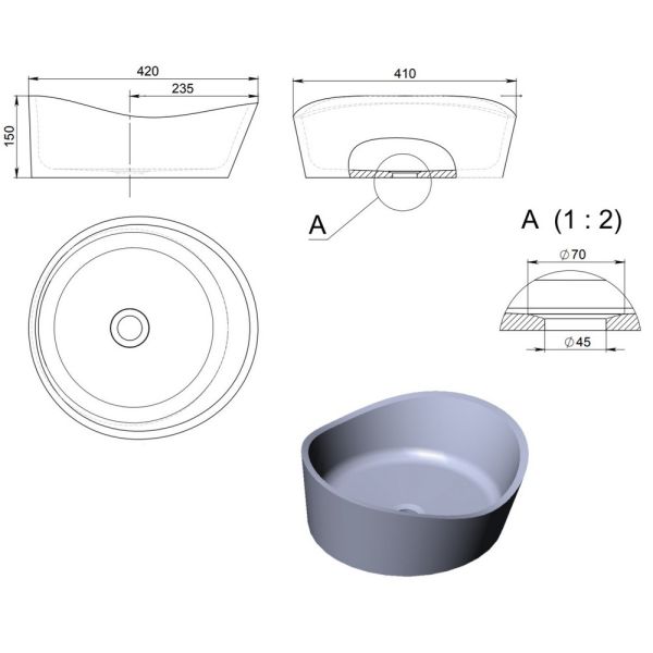 Раковина Holbi Mars 42см бетон 2.02.003.44.4 купить