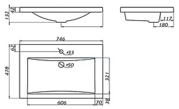 • Диаметр отверстия под смеситель: 33 мм