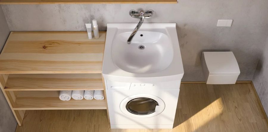 • Раковина устанавливается над стиральной машиной