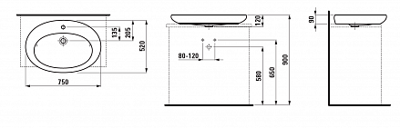 Особенности: 1 отверстие для смесителя посредине, скрытая система слива-перелива, с донным клапаном, без сифона