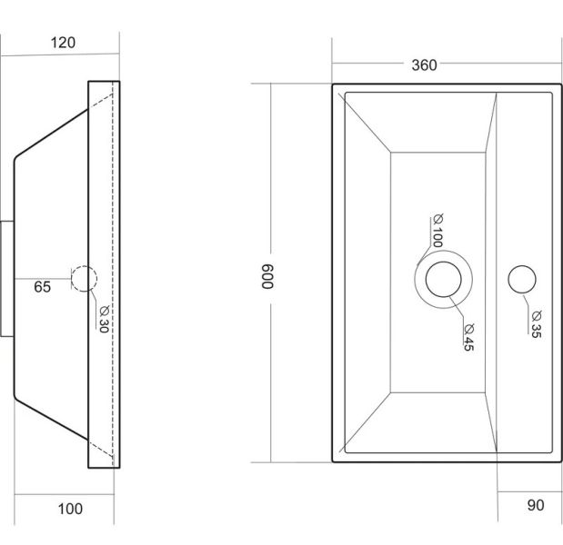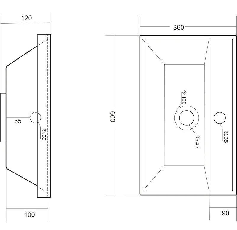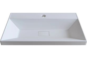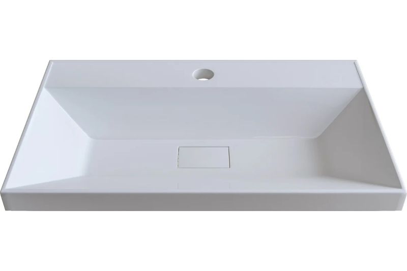 Раковина встраивается на мебель, в столешницу и на подстолье. Верхний слой представляет собой декоративно-защитное покрытие - импортный сантехнический гелькоут. Донный клапан отсутствует. В комплектацию входит декоративная накладка на слив.