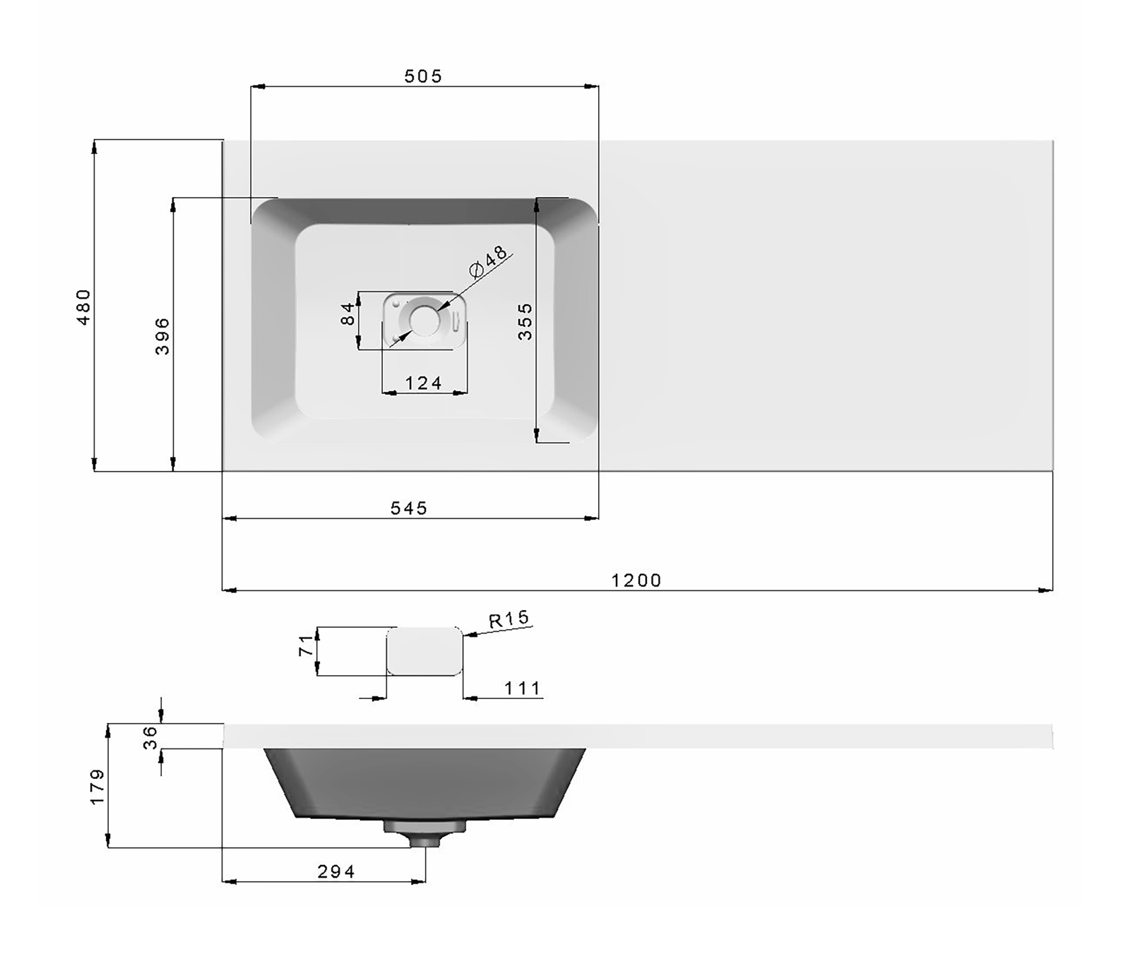 • Отверстия под смеситель: