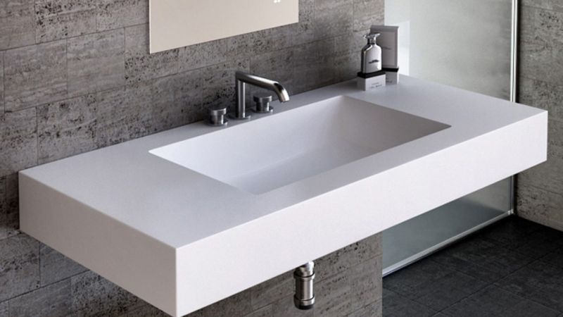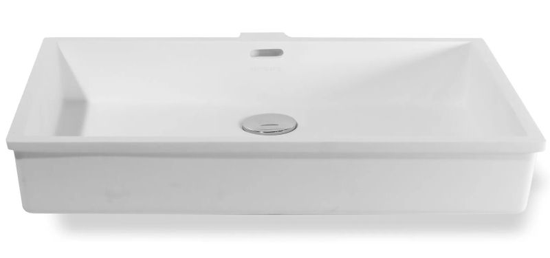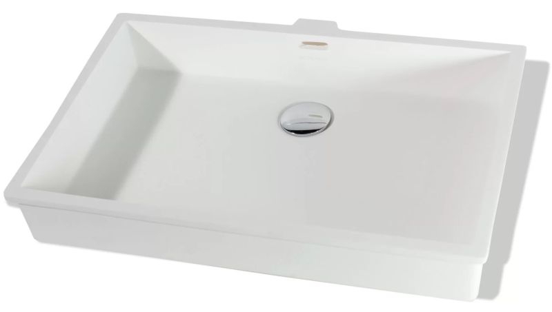 Раковина из искусственного камня для ванной комнаты линейки Montebianco Castello Uno / Castello Due. Практичной прямоугольной формы со смещенным от центра сливным отверстием. Имеет перелив – нередко определяющий фактор выбора раковины. Бесшовно вклеивается в столешницу любого цвета, создавая цельную поверхность, смотрится как единое изделие. Эта особенность расширяет границы использования Castello Uno: вариации цветового решения столешницы, ее размера и формы позволяют реализовать любую дизайнерскую задумку. Уход за раковиной из искусственного камня прост: в большинстве случаев достаточно протереть поверхность влажной губкой с чистящим средством. Материал не впитывает влагу, не порист, непроницаем для плесени, бактерий и грибков. Castello Uno имеет матовую, бархатистую поверхность. Полимерный материал принимает температуру окружающей среды, поэтому в жилом пространстве данная модель раковины всегда будет приятной на ощупь. Отличие Castello Uno от Castello Due – в размерах, наличии перелива у Castello Uno, а также вариантах установки (Castello Due устанавливается как на столешницу или мебель сверху, так и путем вклейки).