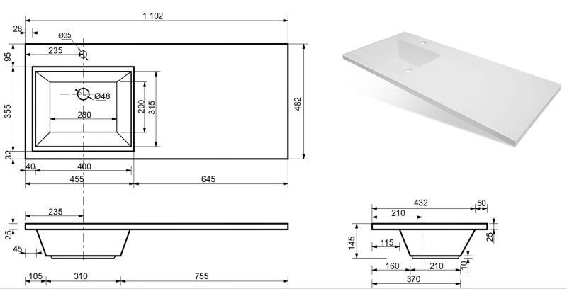 Раковина над стиральной машиной Эстет Даллас ФР-00001741 Л 110см белый купить