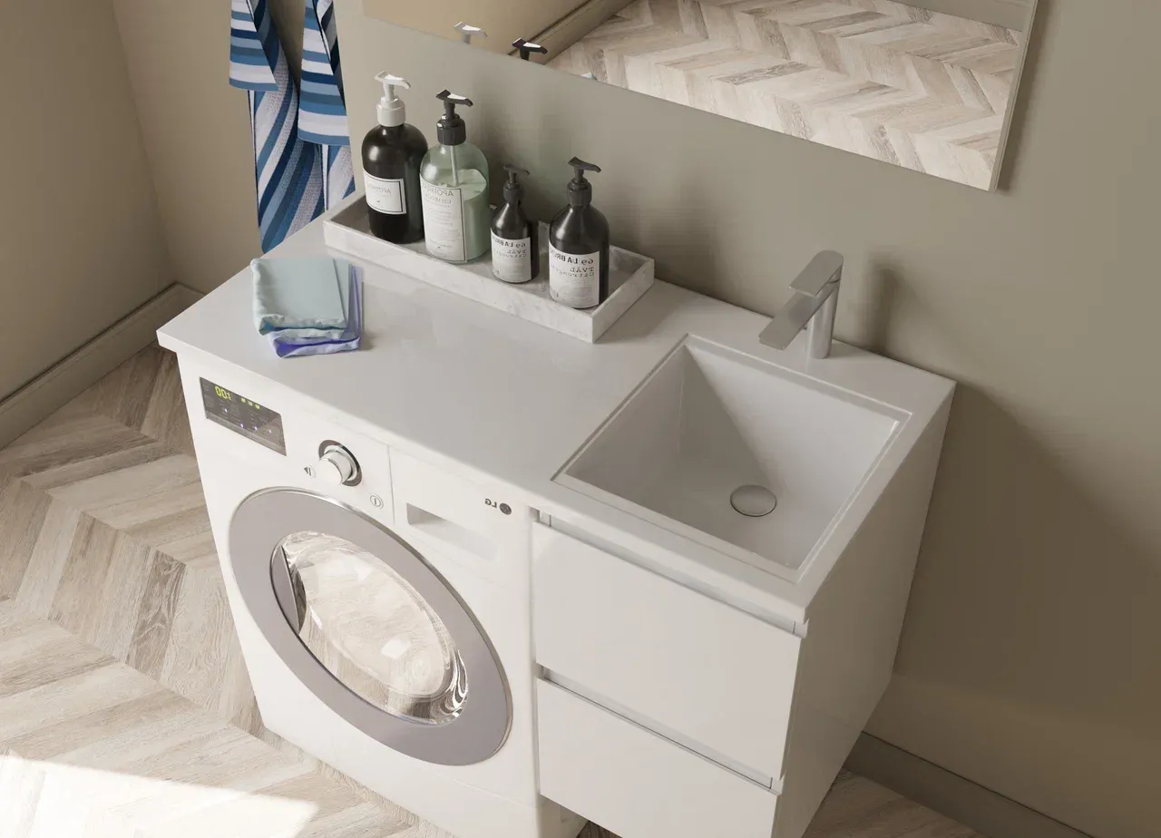 Изящнаая раковина гармонично впишется в любой интерьер ванной комнаты и позволит рационально использовать пространство над стиральной машиной