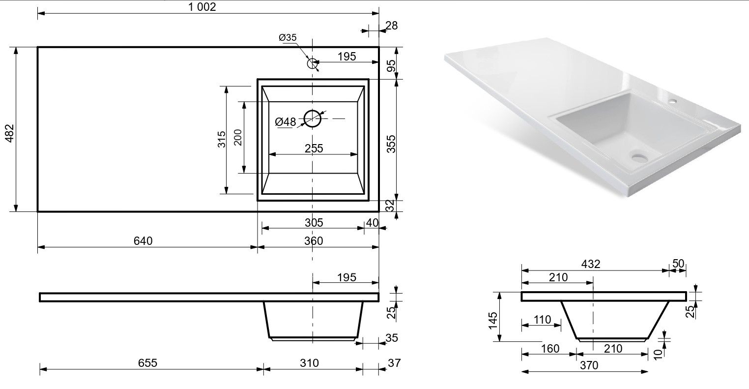 • Отверстия под смеситель: