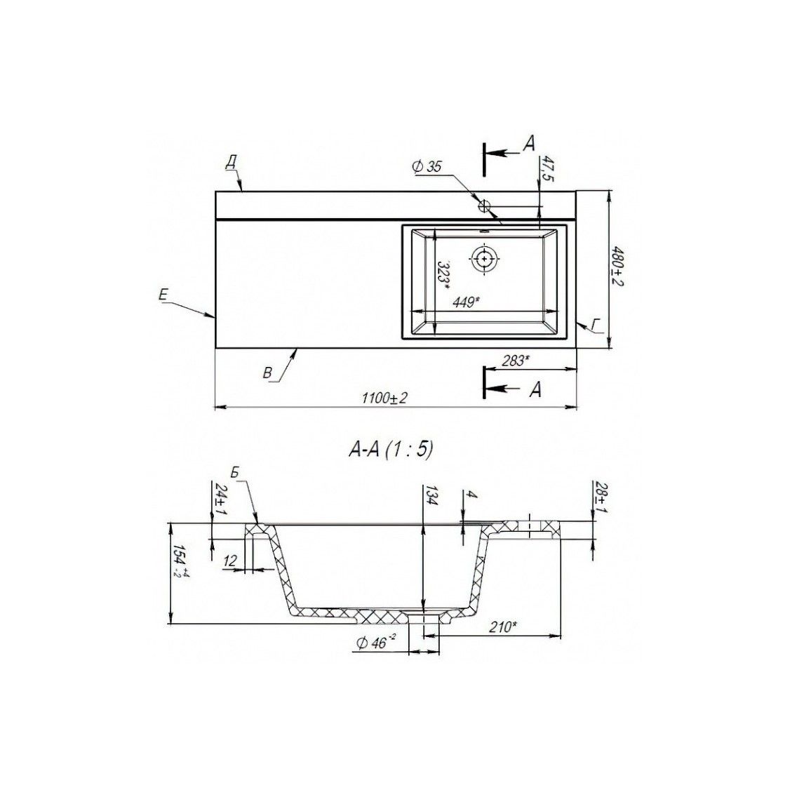 Раковина над стиральной машиной Maretti UM13SM93-844, белая. Материал: литьевой мрамор. Размер: 110x48x15,4. Форма: прямоугольная. Крыло слева.