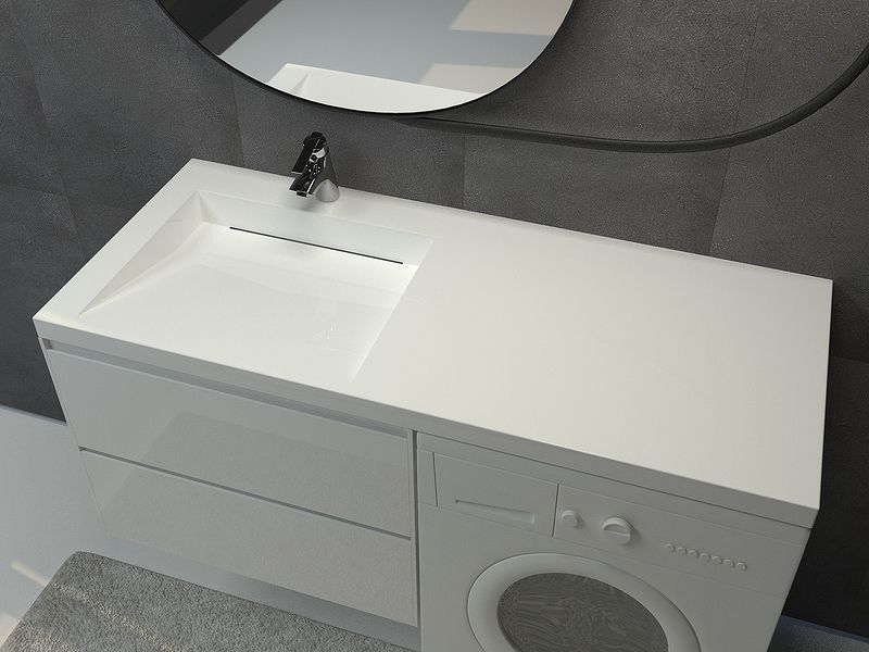 Ультрасовременная раковина в ванную комнату для установки над стиральной машинкой с щелевым сливом. Крепится на кронштейны, которые приобретаются отдельно. Верхний слой высококачественного гелькоута образует декоративно-защитное покрытие. В комплект поставки входит сифон.