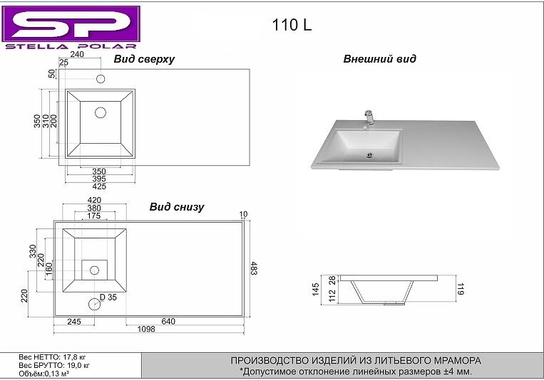 Раковина над стиральной машиной Stella Polar Мадлен 110см левая белый SP-00000837 купить