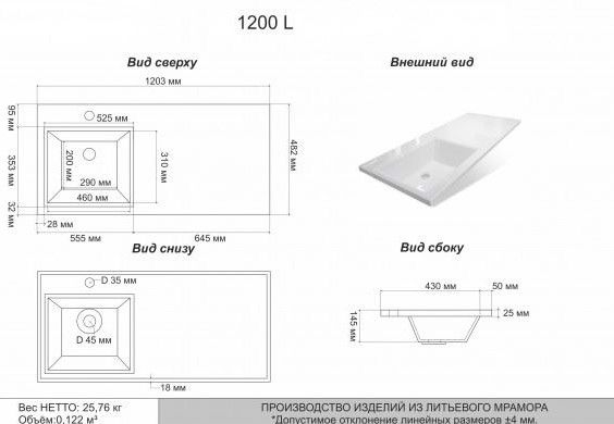 Раковина над стиральной машиной Stella Polar – стильная деталь интерьера ванной комнаты. Раковины над стиральной машиной отличаются великолепным эстетическим видом, придают интерьеру неповторимый шарм и экономят место в ванной комнате.Прямоугольная форма раковины Stella Polar оптимальных размеров, что способствует комфорту использования и монтажа. Современный стиль, в котором выполнена раковина Stella Polar передается во всех элементах данной модели. Материалом является искусственный камень, что отличается максимально гладкой поверхностью и абсолютной гигиениченостью. Возможность установки Stella Polar над стиральной машинкой позволит значительно сэкономить пространство в ванной комнате и при этом не потерять стилевой составляющей.Родина марки Stella Polar – Россия, все раковины производятся с точным соблюдением соответствующих стандартов качества. Раковина над стиральной машиной Stella Polar сделает ванную комнату более комфортной и уютной.Габаритные размеры