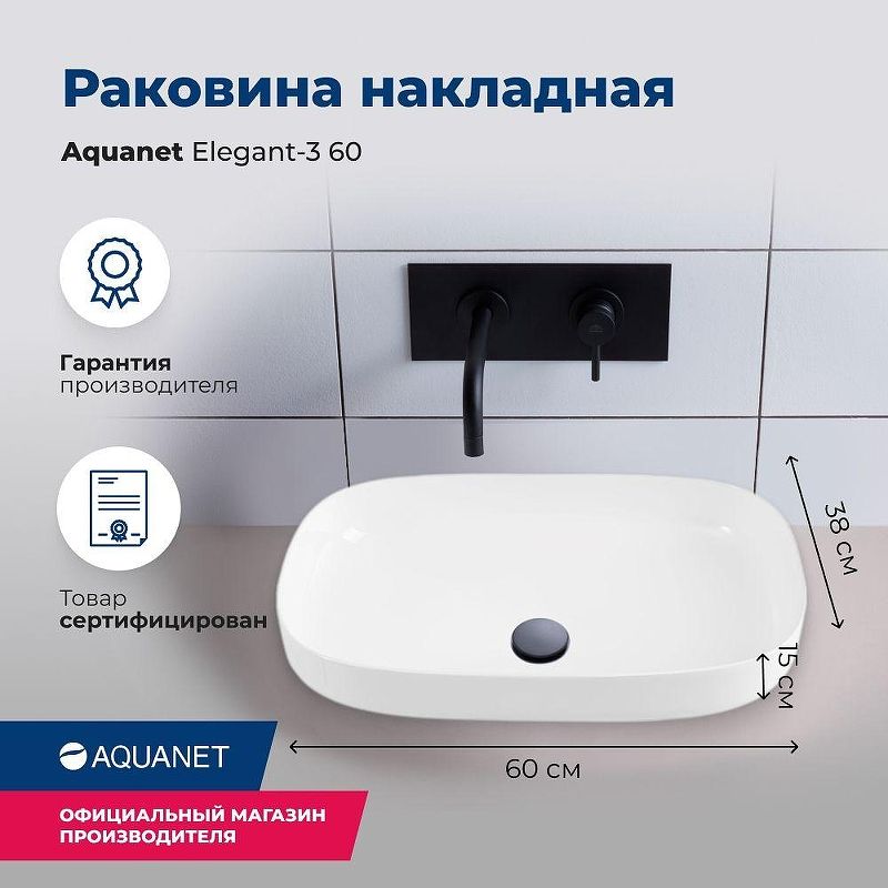 Раковина накладная Aquanet Elegant-3 326056 60 см белый