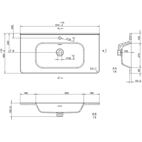 • Отверстия под смеситель: