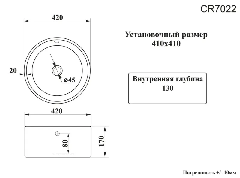 Отверстия под смеситель:нет
