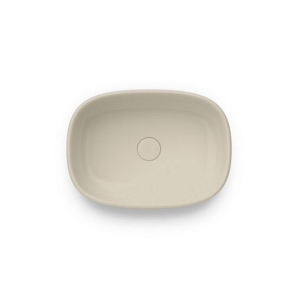 Песочная (бежевая) матовая накладная раковина без отверстия под смеситель, ширина 50 см. Донный ... Подробнее