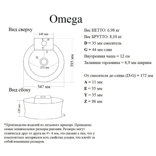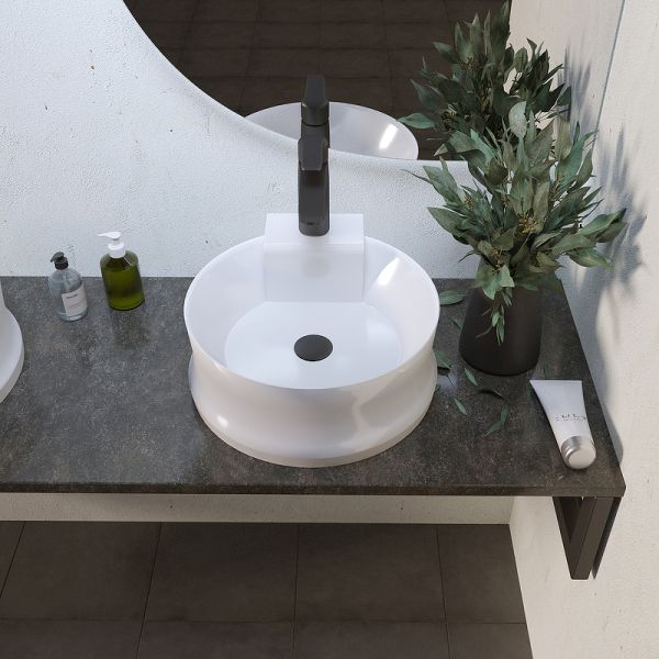 Накладная круглая раковина Omega 40 встраивается на мебель и в столешницу. Донный клапан приобретается отдельно. Верхний слой - антибактериальное декоративно-защитное покрытие.