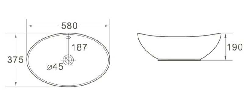 Раковина керамическая 57 х 37.5 х 19 см, с переливом