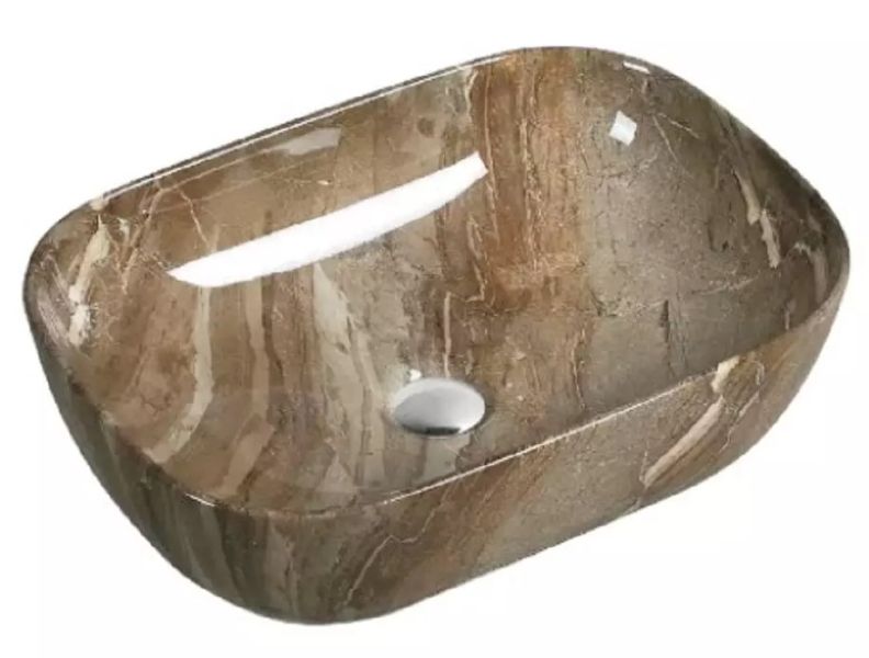 Раковина накладная SantiLine SL-7023 45см тёмно-коричневый мрамор купить