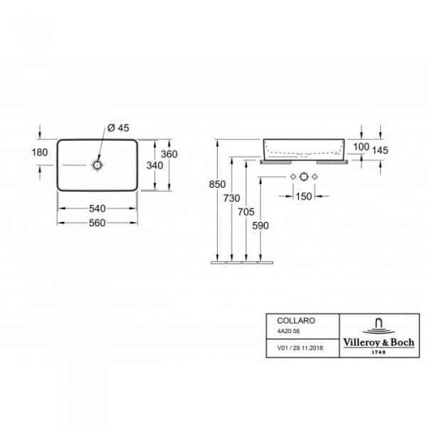 Раковина накладная Villeroy Boch Collaro 36 x 56 см CeramicPlus Альпийский белый