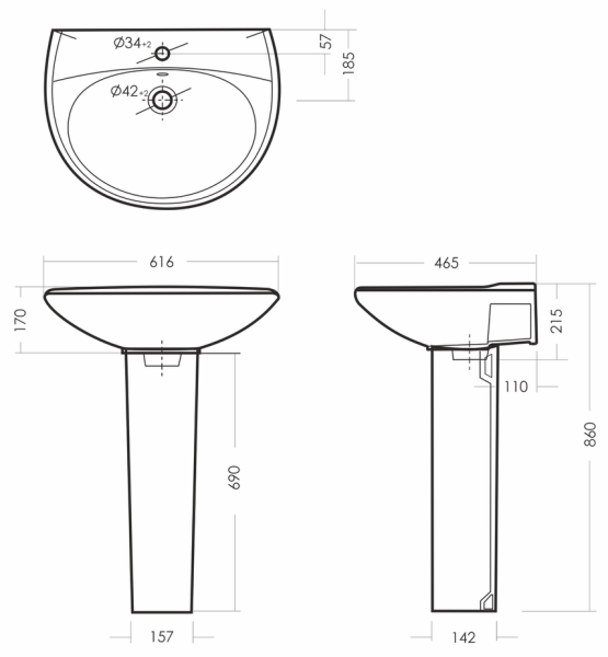 Размеры умывальника 616 x 465 x 215