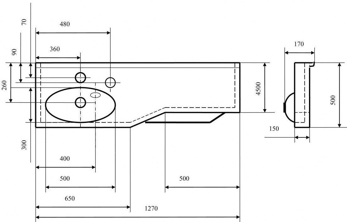 Раковина подвесная Акватон Отель левая 130см белый 1A70113WOT01L