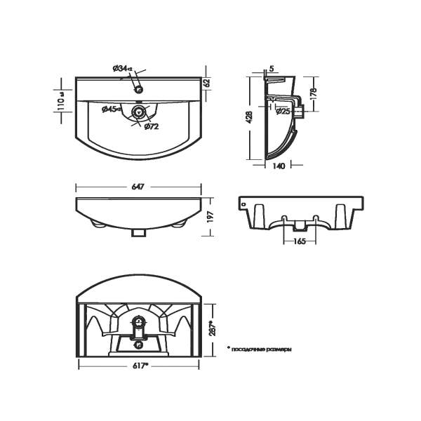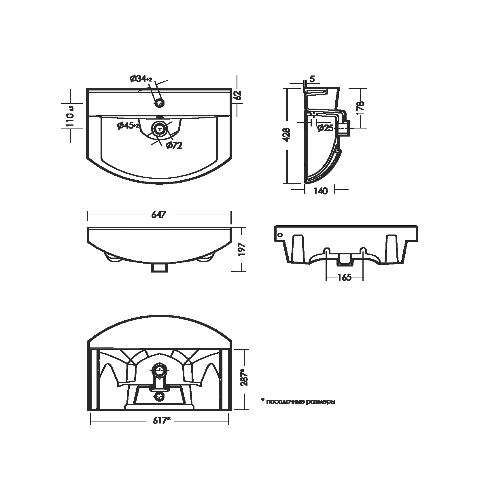 • Отверстия под смеситель: