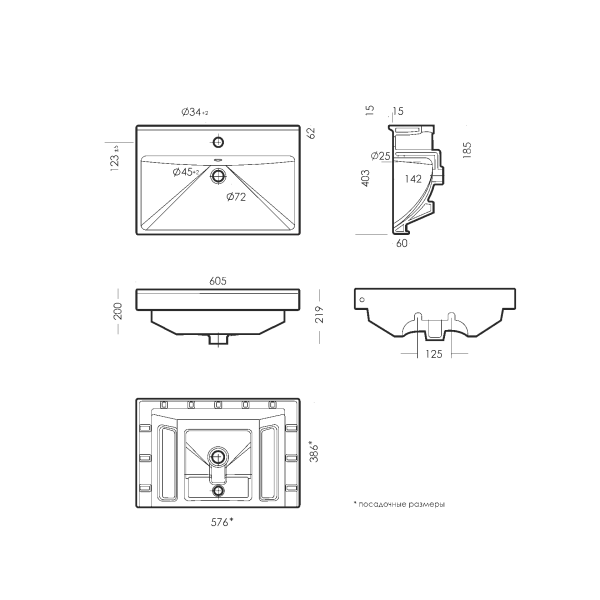Раковина Sanita Luxe Fest WB.FN/Fest/60-C/WHT.G/S1 60.5 см