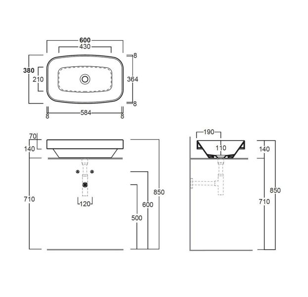 • Отверстия под смеситель: