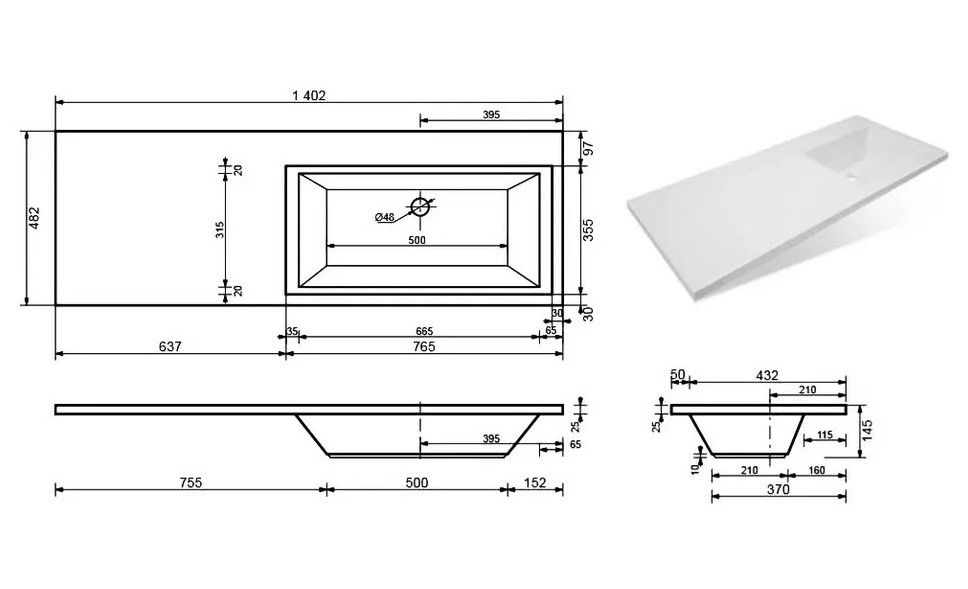 Раковина для мебели Style Line Estetus Даллас 140х48,2 СС-00002432 правая со столешницей, материал искусственный камень.Расположение столешницы - слева.Слив-перелив и донный клапан приобретаются отдельно