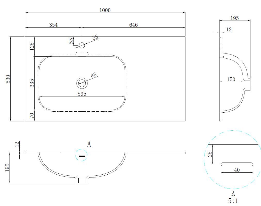 • Отверстия под смеситель: