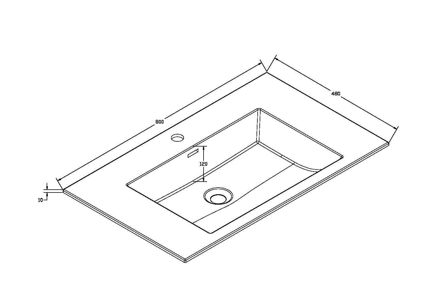 800х480х10Отверстия под смеситель: