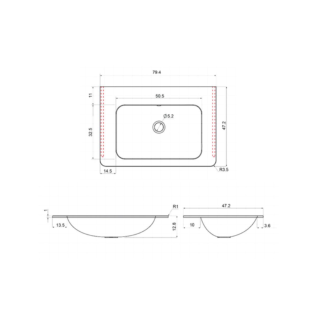 Раковина Vincea VCB-2VP800W 79.4 см белаяШирина, мм: